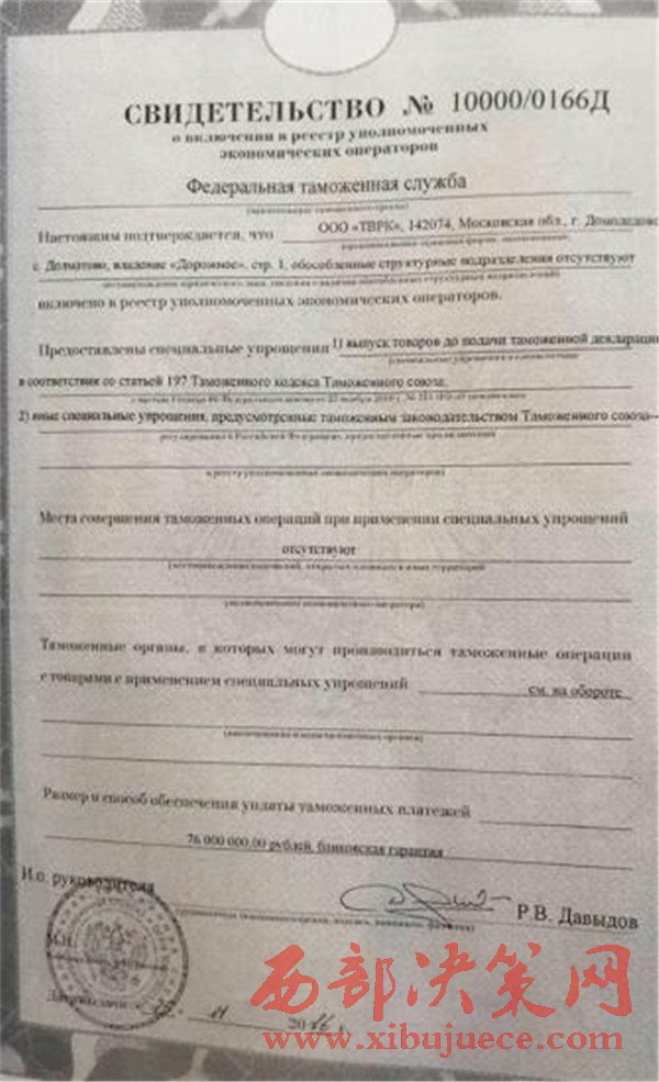 西部決策網(wǎng)訊(王博 通訊員 焦麗)2017年1月13號(hào)北京時(shí)間下午16點(diǎn)莫斯科時(shí)間上午11點(diǎn),跨境電商關(guān)天之窗俄羅斯合伙人平臺(tái)跨境電商中國購創(chuàng)始人關(guān)鑫一行與俄羅斯庫爾干自治州相關(guān)機(jī)構(gòu)負(fù)責(zé)人米哈伊爾羅維奇,羅馬,薩沙達(dá)成協(xié)議,從中國陜西省西安港直達(dá)俄羅斯的貨物允許在俄羅斯邊境自治州庫爾干海關(guān)進(jìn)行清關(guān),莫斯科官方給庫爾干政府相關(guān)機(jī)構(gòu)的批復(fù)函件中標(biāo)注中國西安港到達(dá)俄羅斯庫爾干海關(guān)為全品類清關(guān)。
