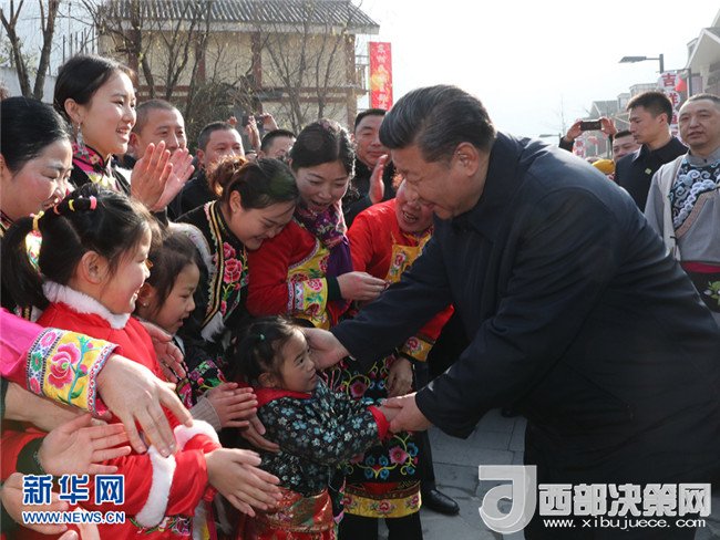 2018年2月12日上午,習(xí)近平在阿壩藏族羌族自治州汶川縣映秀鎮(zhèn)看望慰問群眾。 新華社記者 鞠鵬 攝