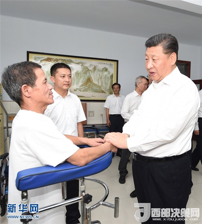 2016年7月28日,中共中央總書記、國家主席、中央軍委主席習(xí)近平到河北唐山市調(diào)研考察。這是習(xí)近平在唐山市截癱療養(yǎng)院看望慰問截癱傷員。 新華社記者 蘭紅光 攝