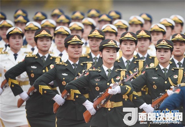 6月6日下午,國(guó)家主席習(xí)近平在人民大會(huì)堂東門(mén)外廣場(chǎng)舉行儀式,歡迎吉爾吉斯斯坦總統(tǒng)熱恩別科夫?qū)χ袊?guó)進(jìn)行國(guó)事訪問(wèn)。這是在歡迎儀式上首次增加的三軍儀仗隊(duì)女兵方陣。新華社記者 陳曄華 攝