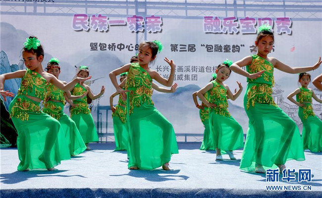 當日,浙江省長興縣包橋幼兒園舉辦“民族一家親”活動,師生家長一同表演舞蹈,展示民族服裝,迎接即將到來的“六一”兒童節(jié)。據悉,該幼兒園一半以上的孩子來自省外,其中不少是少數民族兒童。 新華社記者 徐昱 攝