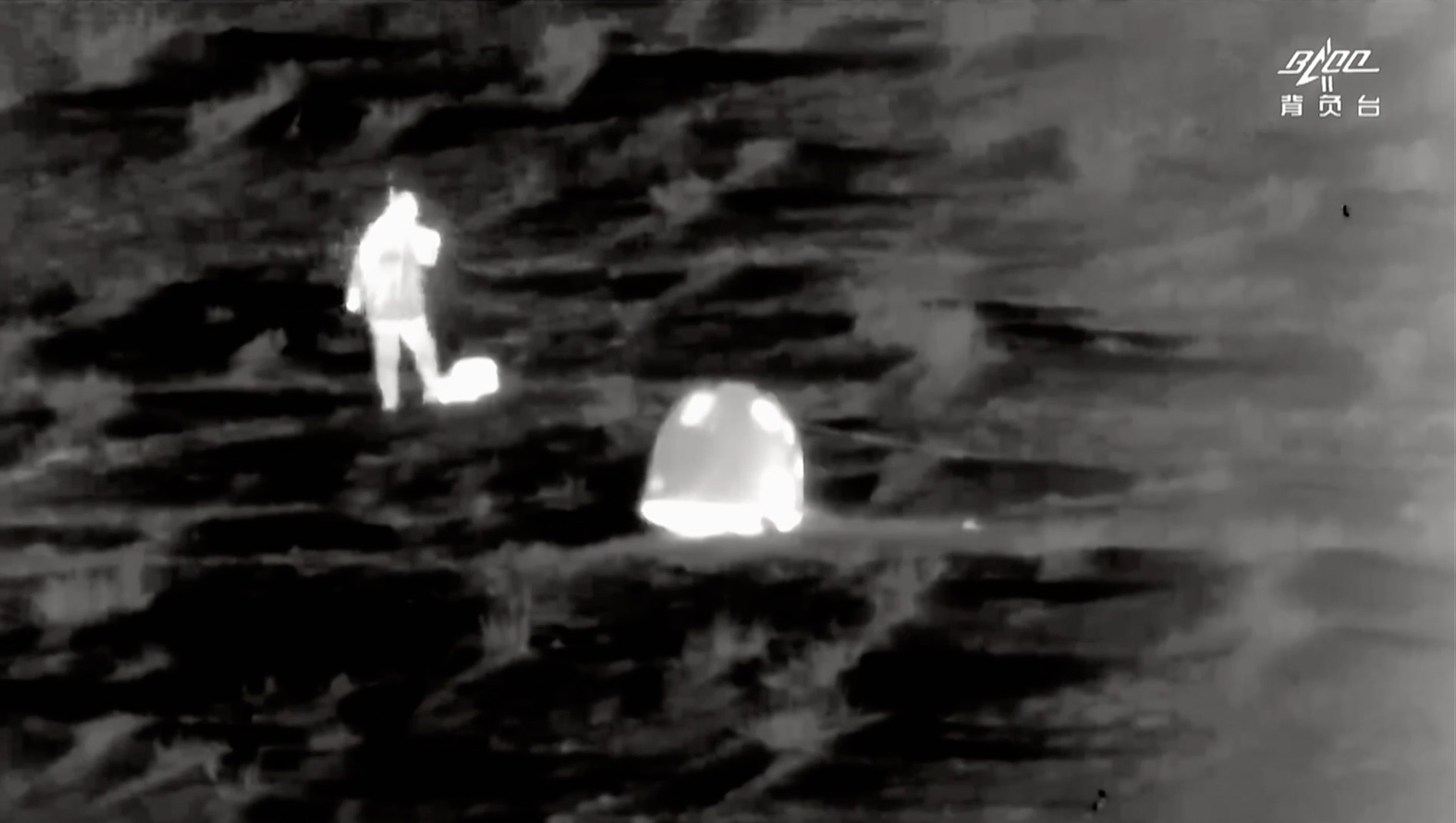△紅外影像顯示一只小動(dòng)物從嫦娥五號(hào)返回器前跑過
