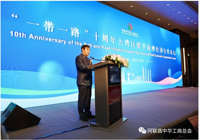 迪拜時間2023年12月20日, “一帶一路”十周年大灣區(qū)攜手海灣經濟合作論壇在迪拜成功舉辦。中國全國政協(xié)常務委員、香港中華總商會會長、粵港澳大灣區(qū)企業(yè)家聯(lián)盟主席蔡冠深博士、中國駐迪拜總領館總領事李旭航閣下、第十三屆全國政協(xié)外事委員會副主任、察哈爾學會會長韓方明博士、沙迦酋長國執(zhí)委會成員、政府關系部主任謝赫·法希姆·阿勒卡西米親王、中國中小企業(yè)協(xié)會專職副會長朱玉、中資企業(yè)機構負責人、華僑社團代表、媒體代表及阿聯(lián)酋政、商界友好人士近400人出席活動。