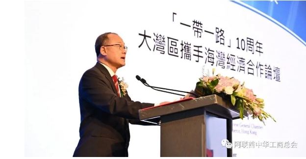中國全國政協(xié)常務委員、香港中華總商會會長、粵港澳大灣區(qū)企業(yè)家聯(lián)盟主席蔡冠深博士在主旨演講中指出,今年是共建“一帶一路”倡議提出十周年。中東地區(qū)是推進“一帶一路”合作建設的重要節(jié)點。香港作為國際都會,在推動“一帶一路”建設擔當參與者、促成者和受益者角色。蔡冠深博士表示,粵港澳大灣區(qū)是阿聯(lián)酋企業(yè)投資中國內地市場的重要切入點。同時,香港可協(xié)同大灣區(qū)企業(yè)進駐阿聯(lián)酋科研及創(chuàng)新園,與阿聯(lián)酋聯(lián)合開發(fā)高科技項目,進行產業(yè)布局,協(xié)同推動阿聯(lián)酋產業(yè)邁向高端化、智能化、綠色化發(fā)展。大灣區(qū)企業(yè)更可把高端科研成果轉化成落地商品,為阿聯(lián)酋提供更多、更實用的創(chuàng)新科技產品。