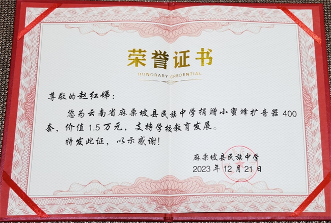 趙紅娣理事長此次為麻栗坡縣民族中學的師生捐贈了400臺“小蜜蜂”擴音器設備,共價值1.5萬元。這些設備能夠為學生提供更加清晰、逼真的聲音體驗,改善學校的教學條件和學生的學習環(huán)境。