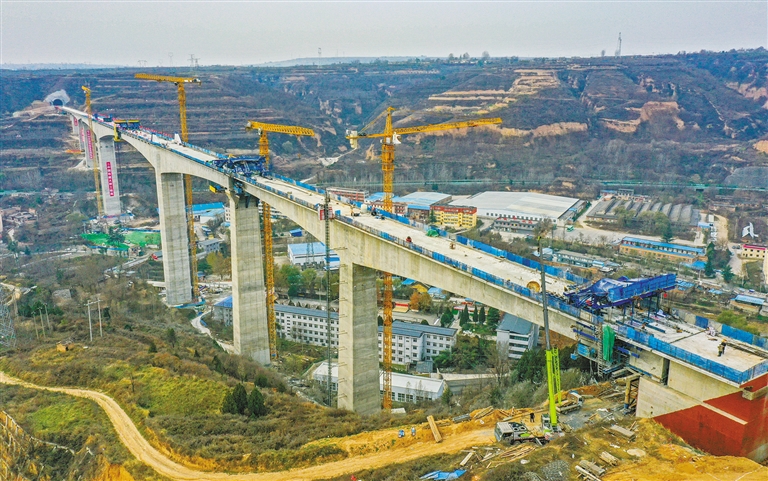 11月15日,西延高鐵全線(xiàn)重難點(diǎn)控制性工程——王家河特大橋主橋成功合龍(資料照片)。