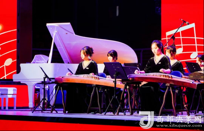 走進(jìn)音樂(lè)殿堂,聆聽(tīng)悠揚(yáng)旋律,敞開(kāi)動(dòng)人心扉,種下新時(shí)代文明的“種子”。整場(chǎng)音樂(lè)會(huì)分為“國(guó)樂(lè)迎新年”“琴韻潤(rùn)匠心”“弦歌啟新程”三個(gè)篇章,采用歌曲聯(lián)唱、情景表演唱、樂(lè)器演奏、歌舞等多種藝術(shù)形式,以音樂(lè)的方式,唱響文明風(fēng)尚、展現(xiàn)人文風(fēng)貌、歌唱時(shí)代心聲、闡釋最美情懷。參演院校師生和寶雞教師合唱團(tuán)傾情演繹《長(zhǎng)相知》《陽(yáng)關(guān)三疊》《瑤族舞曲》《我和我的祖國(guó)》等經(jīng)典曲目,從婉轉(zhuǎn)歌喉到歡快勁舞,以青春風(fēng)采點(diǎn)燃現(xiàn)場(chǎng)師生的熱情,將現(xiàn)場(chǎng)氛圍推向一個(gè)又一個(gè)高潮。最終,這場(chǎng)承載著大家美好新年祝愿的音樂(lè)會(huì)在經(jīng)久不息的掌聲中落下帷幕。