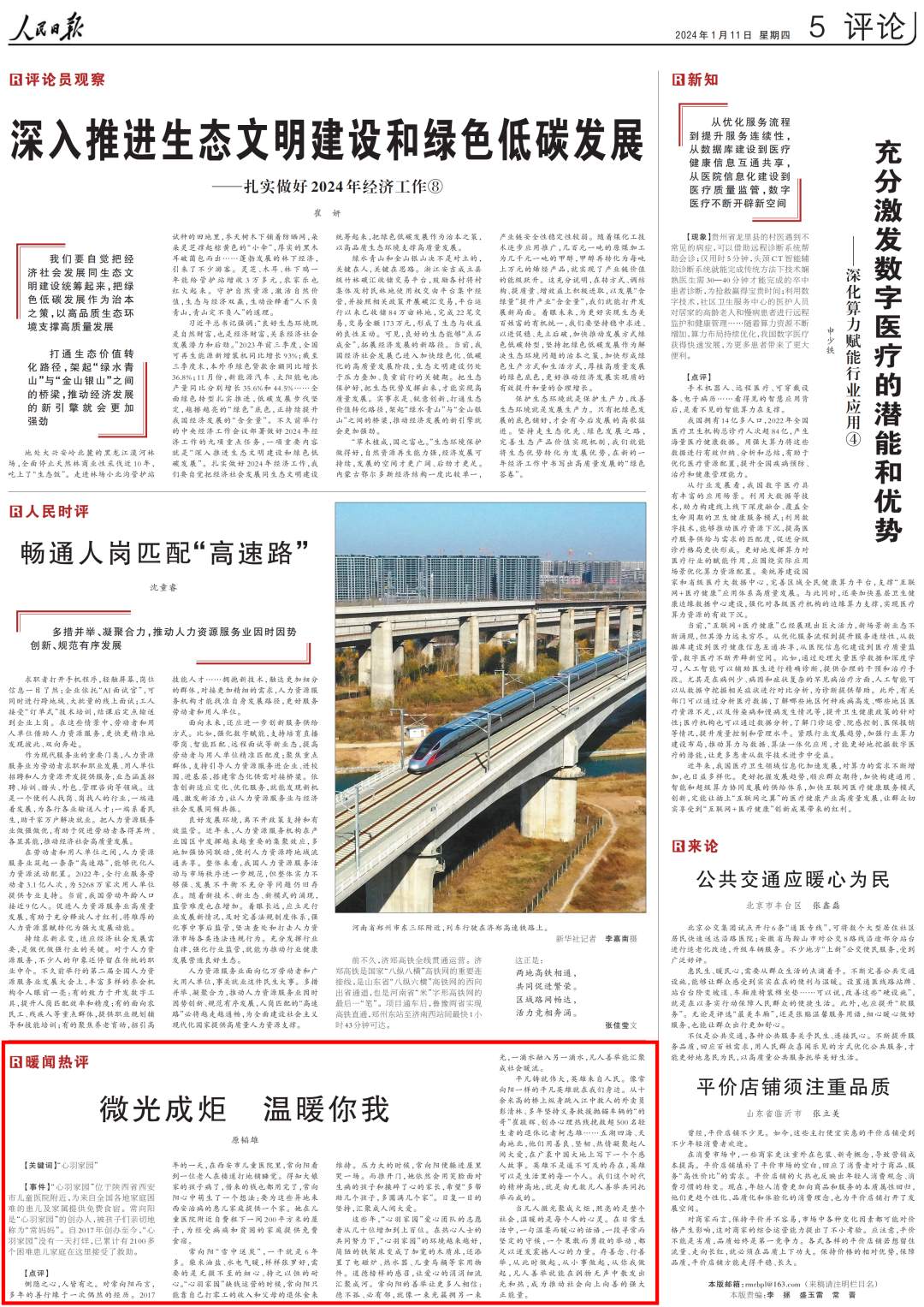 當(dāng)凡人微光聚成火炬,照亮的是整個社會,溫暖的是每個人的心靈。在日常生活中,一句溫柔而暖心的話語,一段尋常而堅定的守候,一個果敢而勇毅的舉動,都足以迸發(fā)震撼人心的力量。存善念、行善舉,從此時做起,從小事做起,從你我做起,凡人善舉就能在潤物無聲中散發(fā)出光和熱,成為推動社會向上向善的強大正能量。