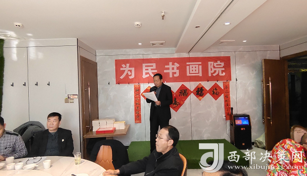 西部決策網(wǎng)訊(記者帥華鋒 張隴峰)1月12日上午,寶雞市老子文化研究會為民書畫院年會在寶雞盛大舉行。參加當(dāng)天活動的有寶雞市原文明辦主任魏武生、交警支隊(duì)原政委劉科芳、寶雞市老子文化研究會會長易渲承、旅游協(xié)會秘書長席升勞等嘉賓。會議由寶雞市政協(xié)原副秘書長朱玉林主持,為民書畫院王偉明院長作了年終總結(jié)報(bào)告。多位書法家現(xiàn)場揮毫潑墨書寫春聯(lián),為現(xiàn)場的各界朋友贈送,并送上新年的祝福。