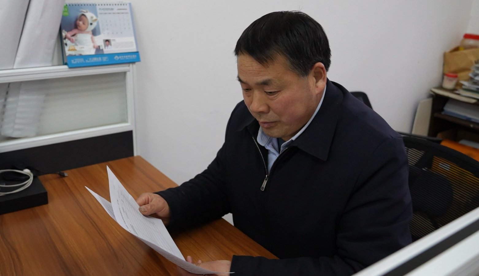夏道華在村委會(huì)辦公室查看報(bào)表