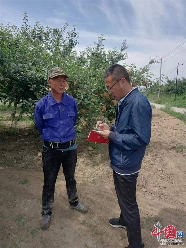 馬亞民來到蘆白村之后,在走訪過程中發(fā)現(xiàn),村民的現(xiàn)代化果園管理技術(shù)跟不上,他積極邀請相關(guān)專家來村開展農(nóng)技培訓(xùn),指導(dǎo)果農(nóng)做好果園管理。與此同時還反復(fù)上門講解搭建防雹網(wǎng)的好處,引導(dǎo)村民搭建起防雹網(wǎng)71畝,對提高果園防災(zāi)減災(zāi)能力起到了很好的示范效應(yīng)。同年10月,馬亞民在走訪防返貧監(jiān)測戶蘆永兵時,主動和他建立幫扶關(guān)系,爭取了一個光伏公益宣傳員崗位,落實了低保、健康、教育、就業(yè)等一系列幫扶政策,讓蘆永兵一家于2022年6月底消除返貧風(fēng)險。
