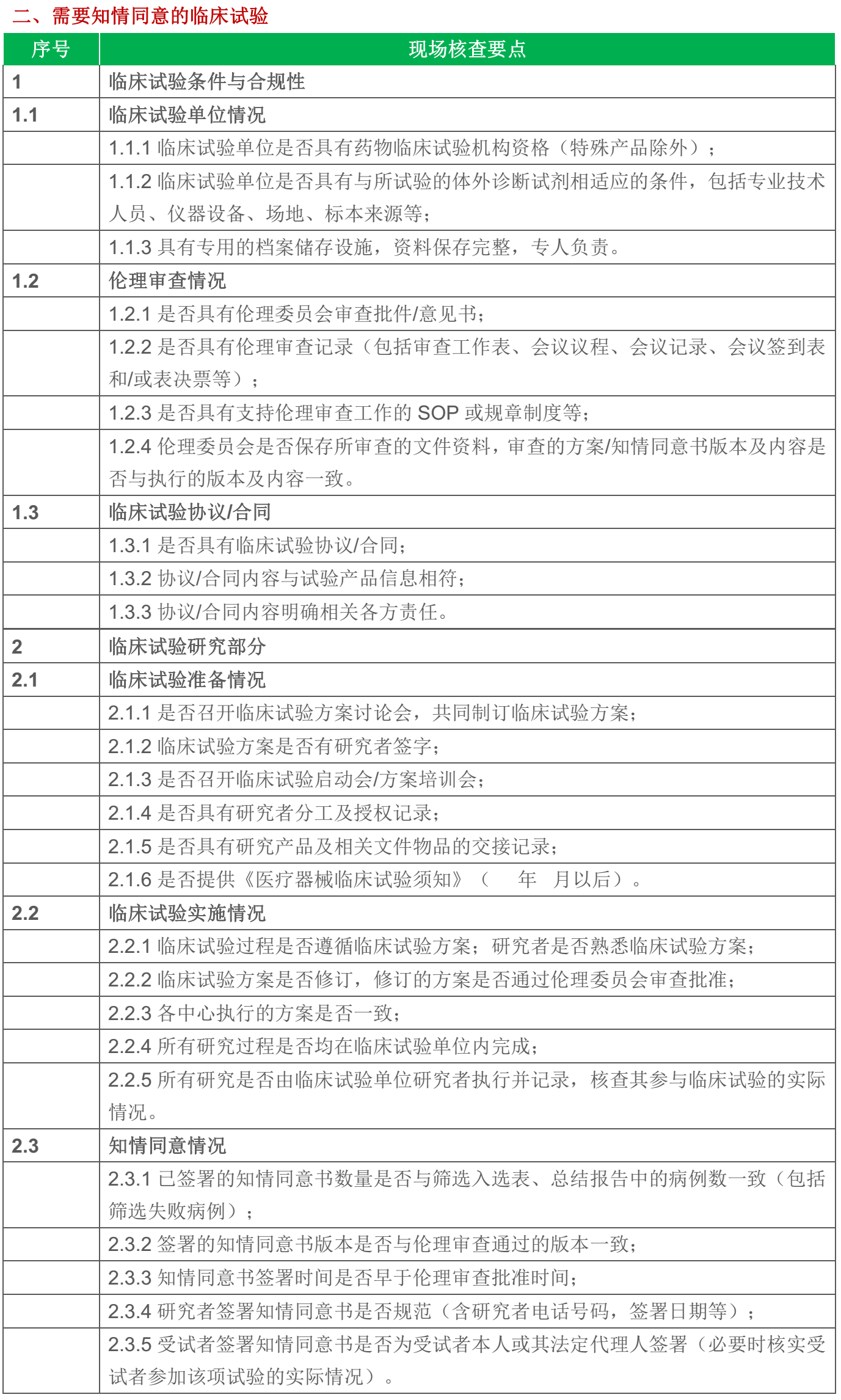 2015年3月9日,北京食品藥品監(jiān)督管理局發(fā)布《關(guān)于征求體外診斷試劑臨床試驗(yàn)現(xiàn)場(chǎng)核查要點(diǎn)意見(jiàn)的通知》,旨在加強(qiáng)體外診斷試劑臨床試驗(yàn)管理,保障體外診斷試劑臨床試驗(yàn)現(xiàn)場(chǎng)核查質(zhì)量?!墩髑笠庖?jiàn)稿》將體外診斷試劑臨床試驗(yàn)分為免于臨床試驗(yàn)(51項(xiàng)核查要點(diǎn))和需知情同意(56項(xiàng)核查要點(diǎn))2類,并分別列出了51和56項(xiàng)針對(duì)性的現(xiàn)場(chǎng)核查要點(diǎn),意見(jiàn)征集期截止至2016年3月21日。